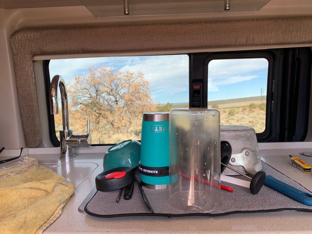 Fellow campers, too, are key sources. In Denver, our #vanlife starting point, Son #1 shared a pin drop on a Google map of a national forest outside of the Grand Canyon with free camping. We didn’t think much about it, until we were en route to the national wonder at 5 p.m. with hours to go before we would arrive at the campsite I had booked in the Chevron station parking lot. “Look!” I said to my husband, Bill, who was driving and didn’t want to look at the map on my phone. “Luke’s camping spot is only 15 minutes away.”