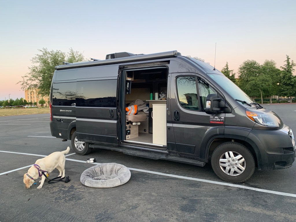 Parking lots. Walmart. Bass Pro Shop. Cabela’s. All are reputed to be friendly to RV and van overnight camping. But not all parking lots are created equal, and some stores do not want your rig on their property after hours. Best to call ahead. In our case, the Bass Pro manager said that overnight camping was once welcome on her central California asphalt, but then Bass Pro sold the parking lot to the neighboring movie theatre. Still, she said, she sees plenty of Jaycos and Sprinter vans setting up for the night. “So I should ask for forgiveness rather than permission?” I asked. She laughed. “I’m not saying yes,” she said. “But I’m not saying no.” Despite a flock of quacking geese in the mall’s pond, our night in the Bass Pro lot was uneventful, if bright from overhead lights. Security drove by at 1 a.m. but didn’t stop. We drove off just as the morning crew arrived to pick up outside litter.
